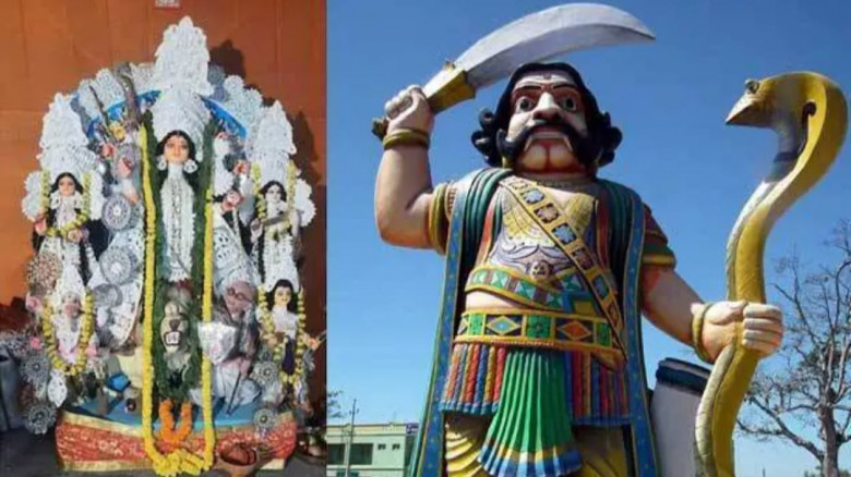 ഗാന്ധിജിയുടെ രൂപത്തിൽ മഹിഷാസുരൻ; ദുർഗ്ഗാ വിഗ്രഹത്ത...