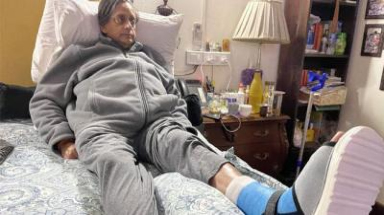 പാർലമെന്റിൽ തെന്നി വീണ് തരൂർ; കാലിന് പ...