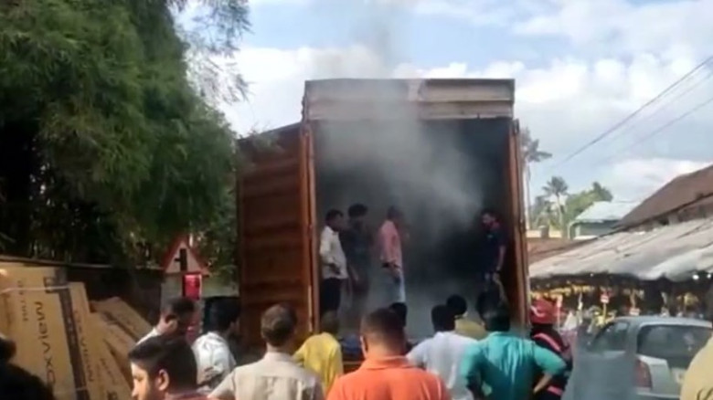 ആലുവയിൽ ടി വിയുമായി പോയ കണ്ടെയ്നർ ലോറിക്ക് തീപിടിച...