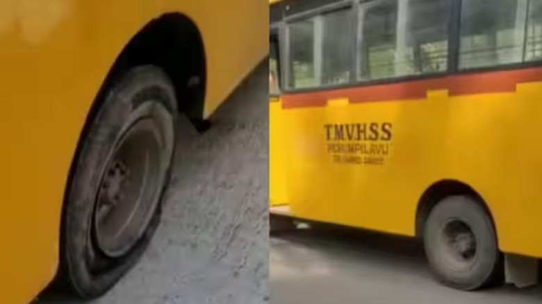 വിദ്യാര്ത്ഥികളുമായി പോകവെ സ്കൂള് ബസിന്റ ടയര് പ...