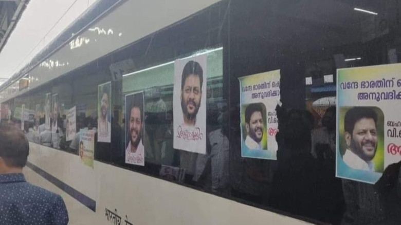വന്ദേഭാരതിൽ പോസ്റ്റർ ഒട്ടിച്ച് കോൺഗ്രസ്...