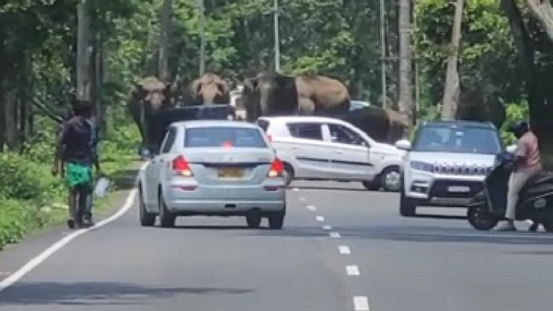 വിനോദ സഞ്ചാരികൾക്ക് നേരെ കൊമ്പന്റെ പരാക്രമം...