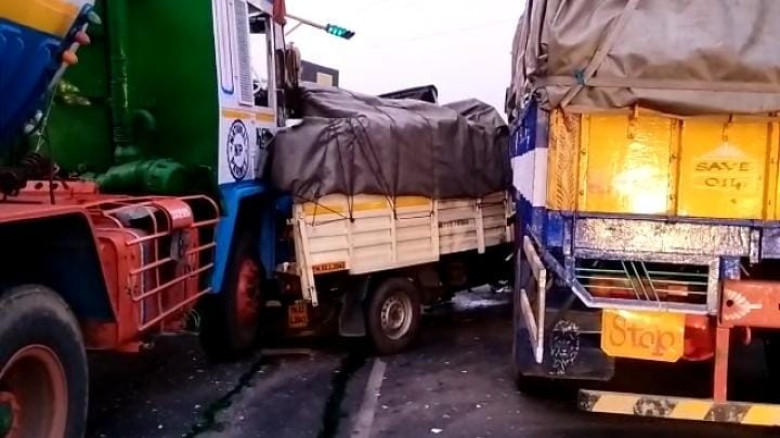 മരത്താക്കരയിൽ രണ്ട് ലോറികളും പിക്കപ്പും കൂട്ടിയിടി...