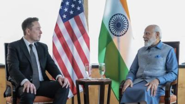 പ്രധാനമന്ത്രി നരേന്ദ്രമോദിയും എലോൺ മസ്...