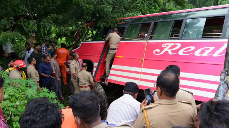 കുന്ദംകുളത്ത് നിയന്ത്രണം വിട്ട ബസ് പാടത്തേക്ക് മറി...