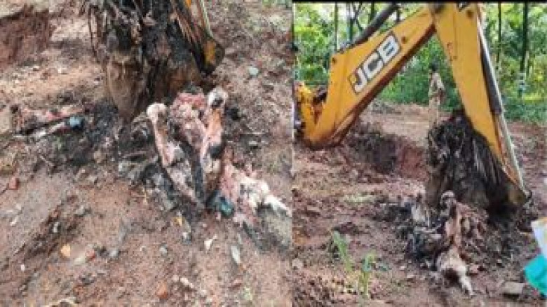 തൃശ്ശൂരില് കാട്ടാനയുടെ ജഡം റബ്ബർ തോട്ടത്തിൽ കുഴിച...