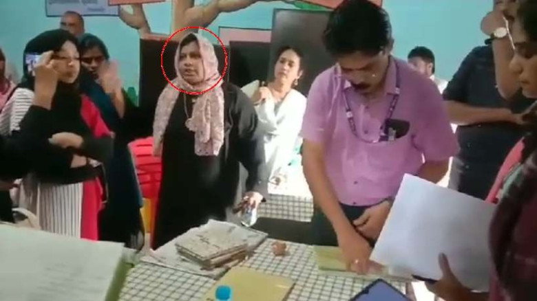 പരിശോധനക്ക് എത്തിയവരെ സ്കൂളിലേക്ക് പ്രവേശിപ്പിച്ച...