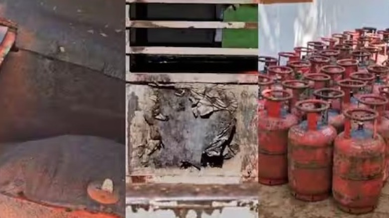 പാചക വാതക സിലിണ്ടറുകള് കയറ്റിയ വണ്ടിയ്ക്ക് തീപിടി...