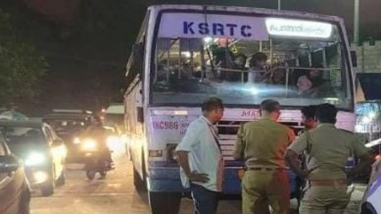 രാത്രി ഹെഡ്ലൈറ്റില്ലാതെ യാത്ര; കെഎസ്ആർടിസി ബസ് പി...