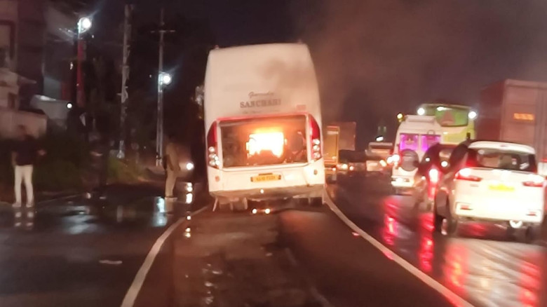 ദേശീയ പാത മുരിങ്ങൂരിൽ കെ.എസ്.ആർ.ടി.സി ബസിന് തീ പിട...