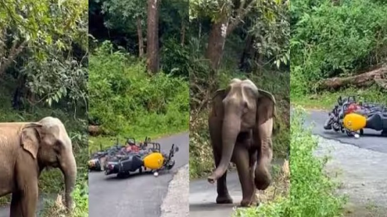 പാഞ്ഞടുത്ത് കാട്ടാന, ബൈക്ക് നിലത്തിട്ട് ഓടി രക്ഷപ്...