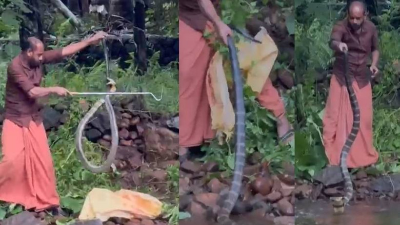 എച്ചിപ്പാറയിൽ യുവാക്കളെ കൊണ്ട് രാജവെമ്പാലയെ പിടിപ്...