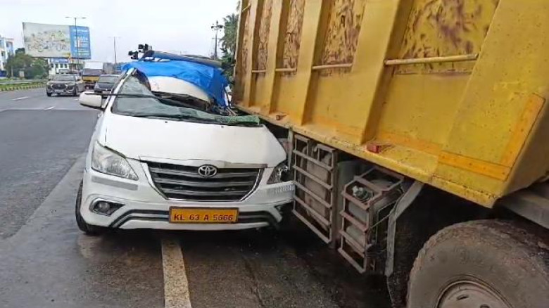 ചരക്ക് ലോറിയില് ഇടിച്ച് നിയന്ത്രണംവിട്ട കാര് ടോറ...
