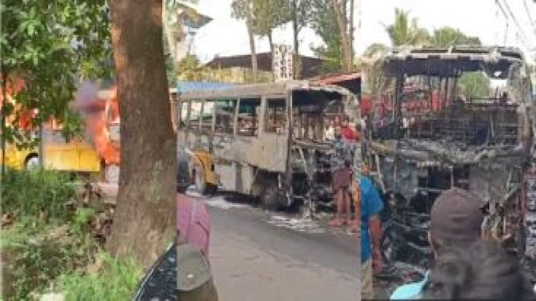 ഓടിക്കൊണ്ടിരുന്ന സ്കൂള് ബസിന് തീപിടിച്ചു; പൂര്ണ...