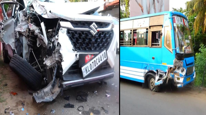 കൊടുങ്ങല്ലൂരിൽ നിയന്ത്രണം വിട്ട കാർ ബസിൽ ഇടിച്ചു, ...