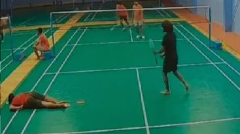 തറയിൽ വീണ ഷട്ടിലെടുക്കാൻ കുനിഞ്ഞു, തൊട്ടുപിന്നാലെ ...